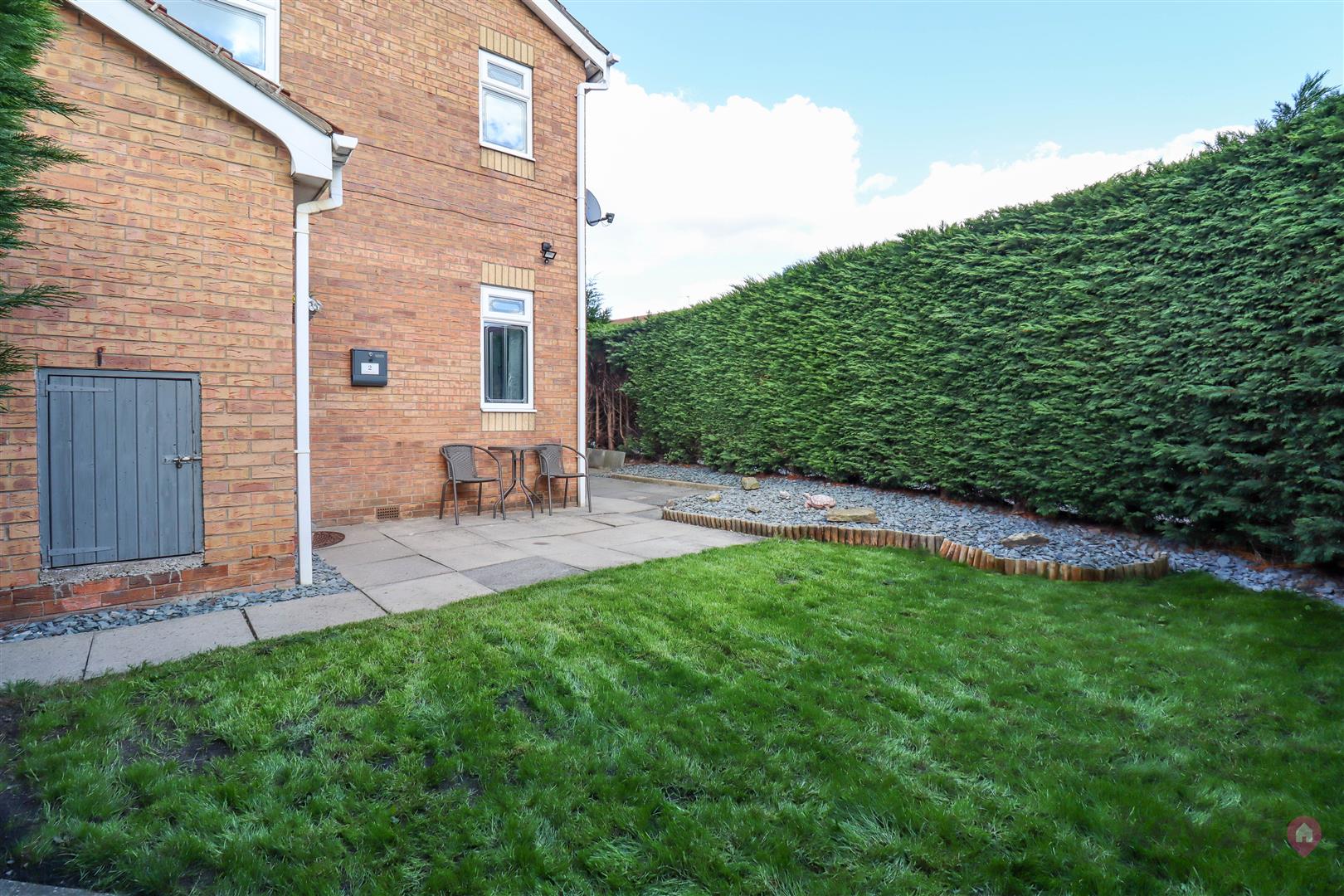 The property benefits from a private front garden with a patio and lawn, bordered by hedging for added privacy, along with the convenience of allocated parking.