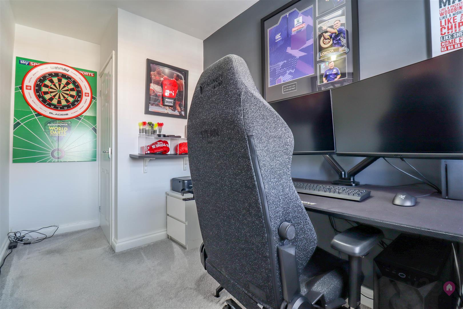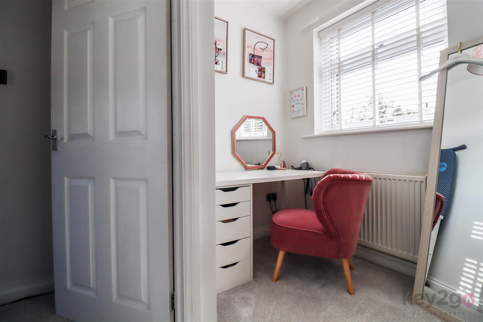 The first floor comprises a large double bedroom with fitted wardrobes, a second small double bedroom, and a further double bedroom above the carport, along with a family bathroom. There is also a nook area, ideal for a home office desk.