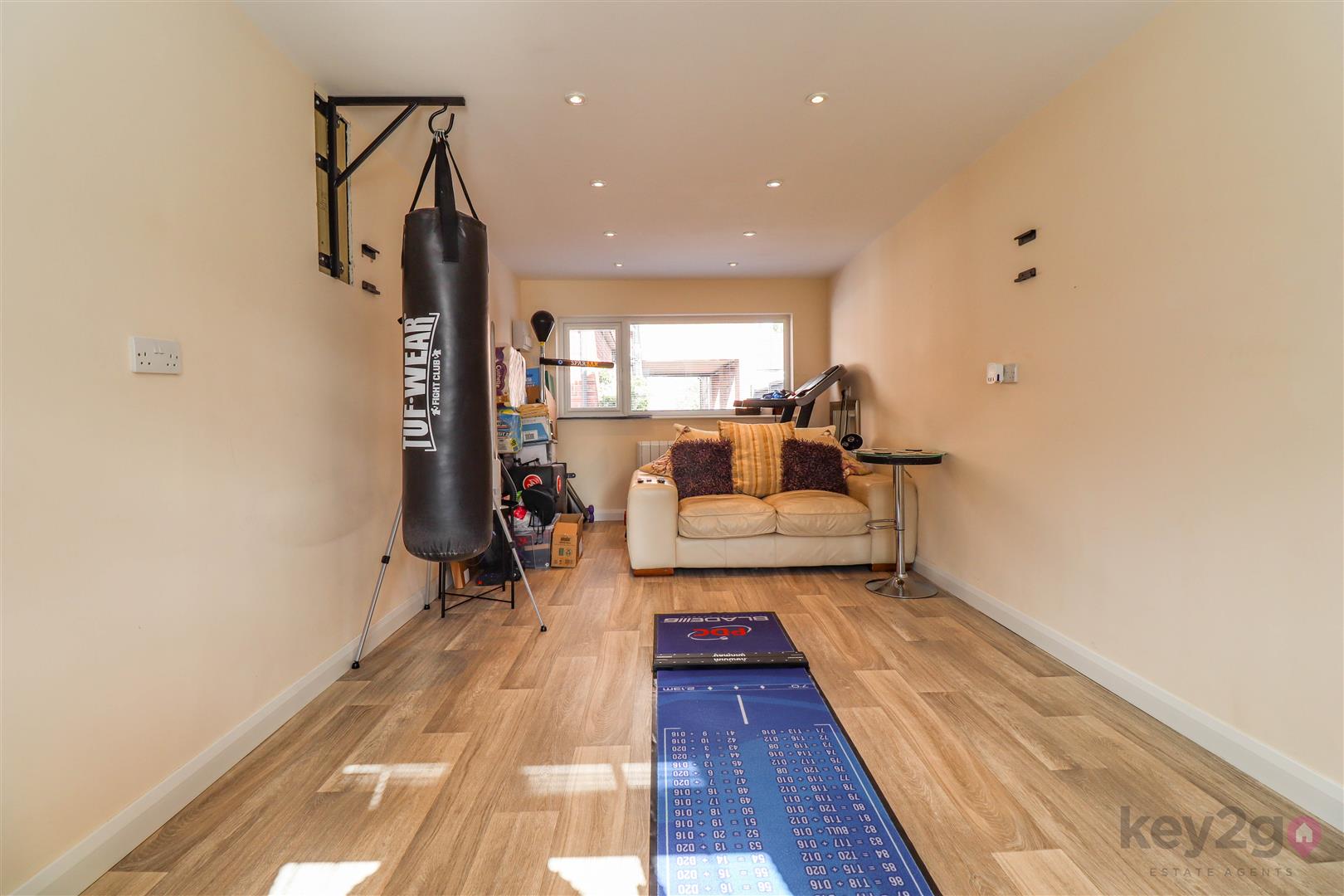 The front of the property benefits from a driveway, lawn, and a carport beneath the extension. To the rear is a large lawned garden with hedging and a converted garage with power and lighting, offering flexibility to be used as an office or playroom.