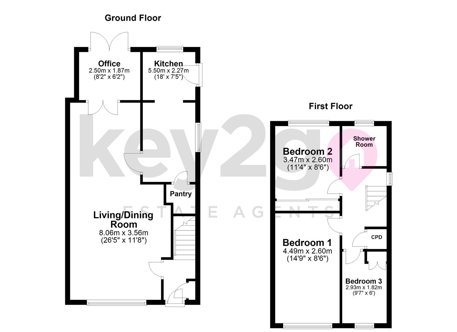 Stairs rise to the first floor, where there are two double bedrooms positioned to the front and rear, both benefiting from fitted wardrobes. There is also a single bedroom to the front, also with fitted wardrobes, along with a modern family shower room.