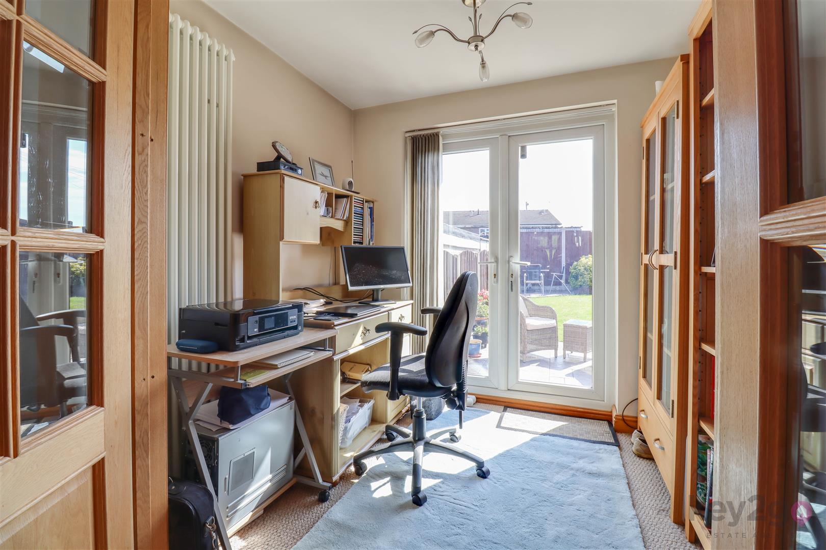 A useful hallway with a storage cupboard and stairs rising to the first floor, with a door leading into the lounge/diner. The lounge/diner is bright and well-proportioned, with a feature window to the front, and provides access through to the kitchen and office. The office offers a versatile space, ideal as a playroom or snug, and benefits from patio doors opening onto the rear garden. The extended kitchen is fitted with a range of modern wall and base units, with a utility area to the rear and an under-stairs storage cupboard.