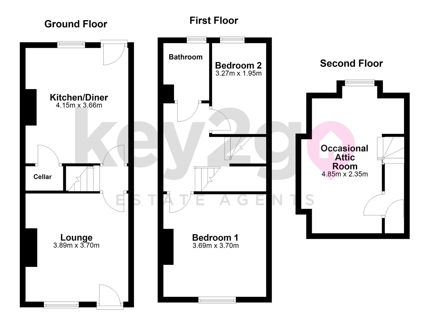 A carpeted stair rise to the first floor landing with a ceiling light, radiator and doors to the two bedrooms and bathroom. Stairway to the occasional attic room.
