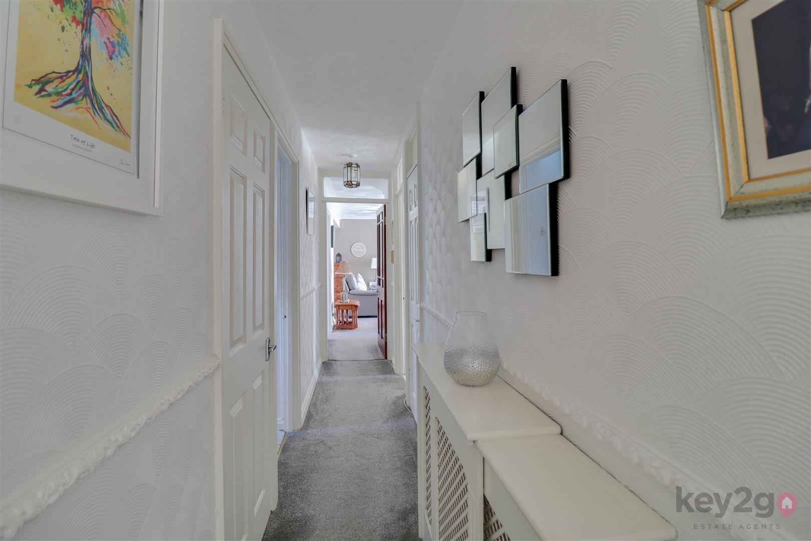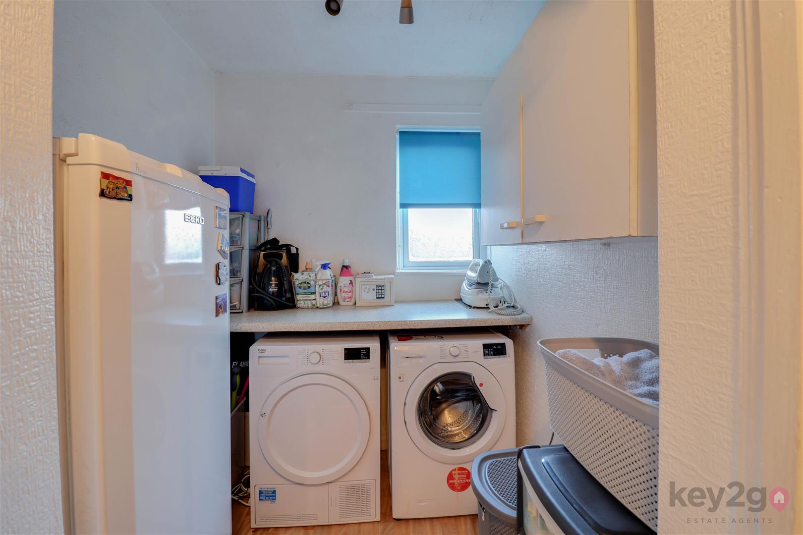 The property opens into a welcoming hallway with neutral décor and carpet. The utility room includes a worktop, wall units, space for a washing machine and dryer, a window, and laminate flooring. Bedroom Two is a double room with neutral décor, carpet, and a window. The shower room is modern and stylish, featuring a walk-in shower unit, a sink with storage, tiling, and an obscure window. There is also a separate WC with a close-coupled toilet, neutral décor, tiled flooring, and an obscure window. Bedroom One is a double room with neutral décor, carpet, and a window.