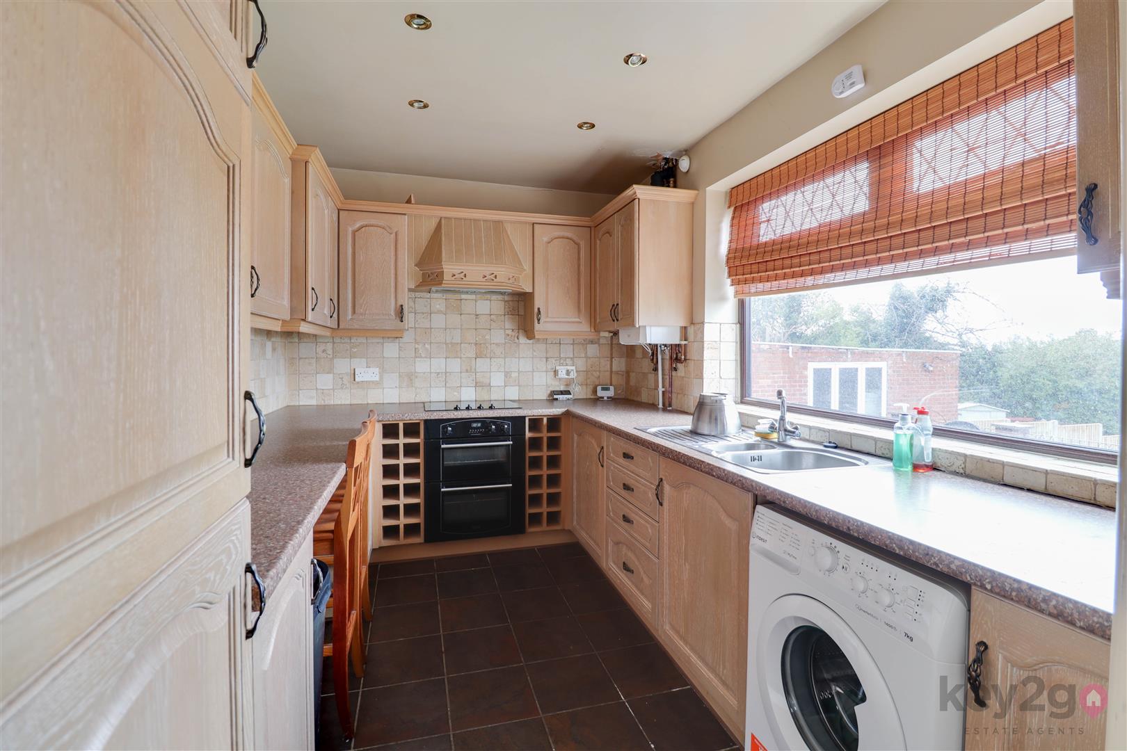The hallway has a UPVC door entry via the side/back, stairs, a neutral finish and laminate flooring. The kitchen offers ample wall and base units with contrasting worktops, an integrated oven, electric hob, fridge freezer, tiled splashback, double sink, a window overlooking the rear and a tiled floor, along with a breakfast bar area. The lounge is spacious with a neutral finish, carpet, a bay window plus an additional window and a feature fireplace.