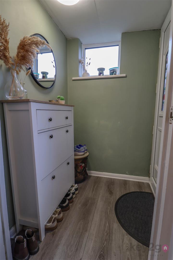 UPVC door leading into a useful porch, with a further door opening into the spacious lounge featuring a front-facing window and stair rise to the first floor. A door leads through to the kitchen/diner, fitted with a modern high-gloss kitchen, and a UPVC door providing access to the rear garden.