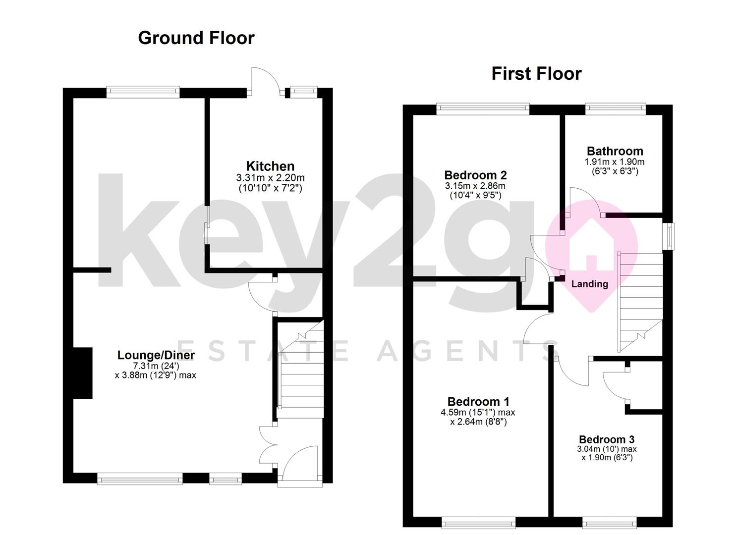 Stairs rise to a spacious and bright landing, finished in neutral décor and benefiting from a window. Doors lead to the bedrooms and bathroom.